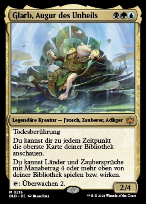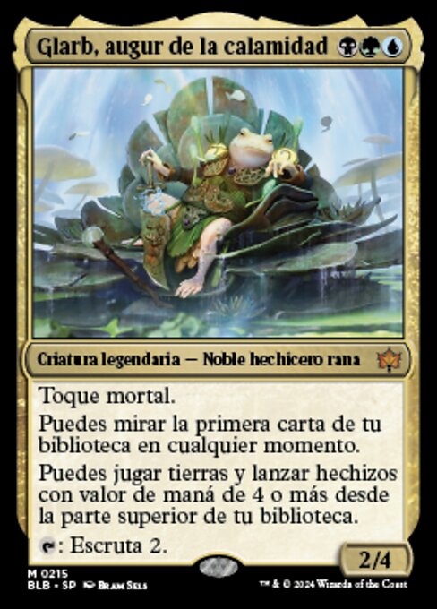 |  Variations : 1Parts— | Glarb, Calamity's Augur2 / 4 Deathtouch You may look at the top card of your library any time. You may play lands and cast spells with mana value 4 or greater from the top of your library.