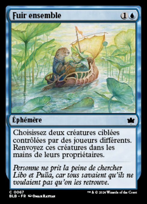 ![]() Variations— Parts— | 共に逃走クリーチャー2体を、それぞれコントローラーが異なるように選び、対象とする。それらのクリーチャーをオーナーの手札に戻す。