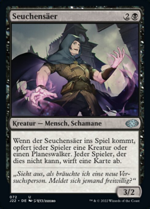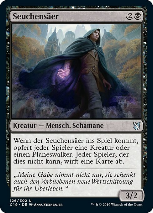 ![]() Variations— Parts— | Seuchensäer3 / 2 Wenn der Seuchensäer ins Spiel kommt, opfert jeder Spieler eine Kreatur oder einen Planeswalker. Jeder Spieler, der dies nicht kann, wirft eine Karte ab.