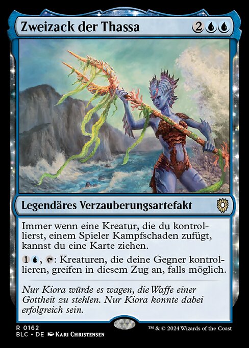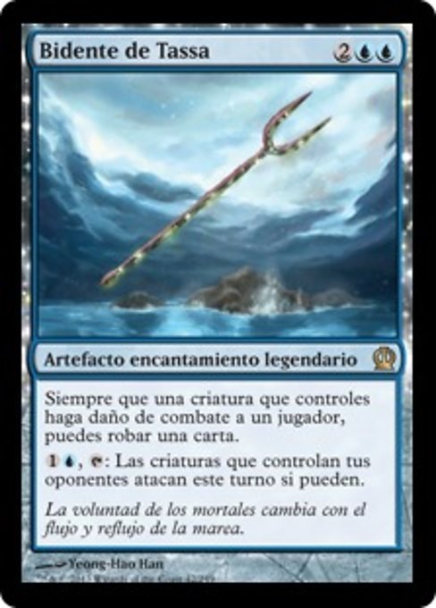 ![]() Variations— Parts— | Bidente de TassaSiempre que una criatura que controlas haga daño de combate a un jugador, puedes robar una carta.