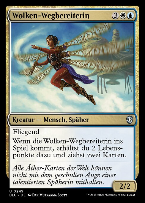 |  Variations— Parts— | Défricheuse des nuages2 / 2 Vol Quand la Défricheuse des nuages arrive, vous gagnez 2 points de vie et vous piochez deux cartes.