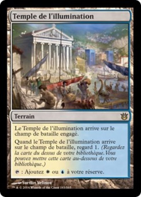 ![]() Variations— Parts— | Tempio dell'IlluminazioneIl Tempio dell'Illuminazione entra nel campo di battaglia TAPpato. Quando il Tempio dell'Illuminazione entra nel campo di battaglia, profetizza 1. (Guarda la prima carta del tuo grimorio. Puoi mettere quella carta in fondo al tuo grimorio.)