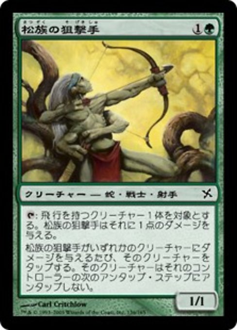 ![]() Variations— Parts— | Matsu-Tribe Sniper1 / 1 Whenever this creature deals damage to a creature, tap that creature and it doesn't untap during its controller's next untap step.