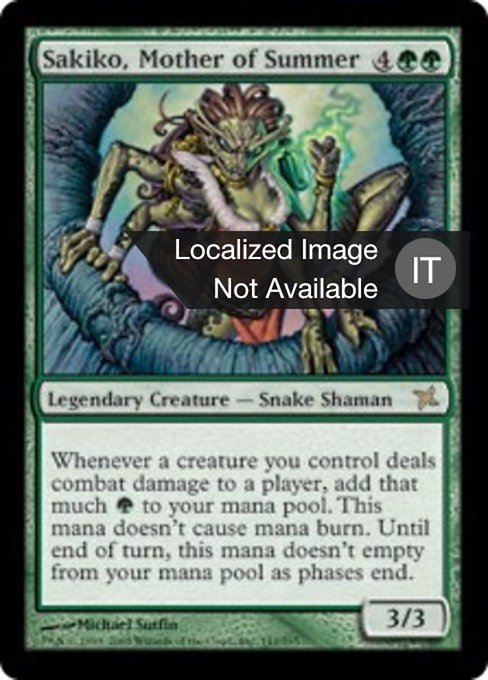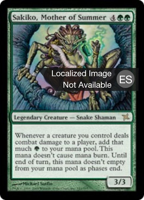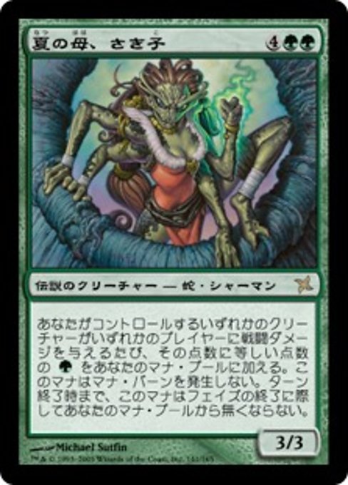 |  Variations— Parts— | Sakiko, Mother of Summer3 / 3 Whenever a creature you control deals combat damage to a player, add that much