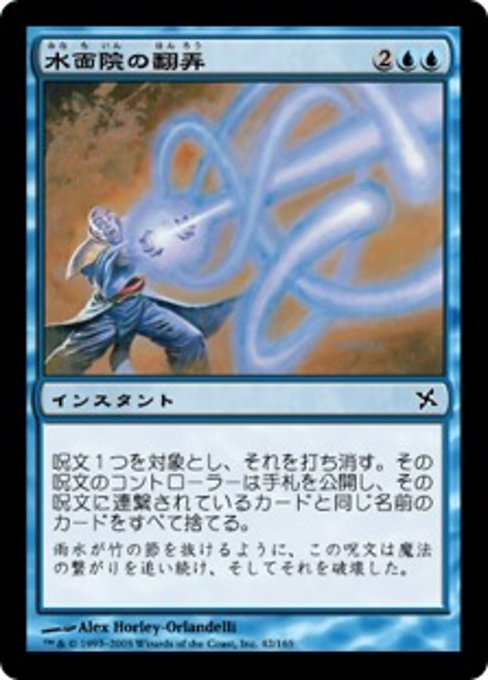 ![]() Variations— Parts— | Minamo's MeddlingCounter target spell. That spell's controller reveals their hand, then discards each card with the same name as a card spliced onto that spell.