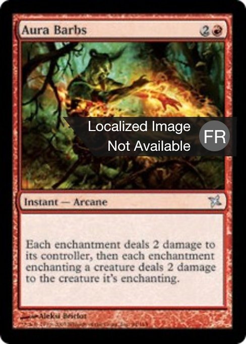 ![]() Variations— Parts— | Aura BarbsEach enchantment deals 2 damage to its controller, then each Aura attached to a creature deals 2 damage to the creature it's attached to.