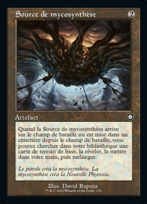 |  Variations— Parts— | Mycosynth WellspringWhen this artifact enters or is put into a graveyard from the battlefield, you may search your library for a basic land card, reveal it, put it into your hand, then shuffle.