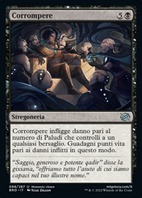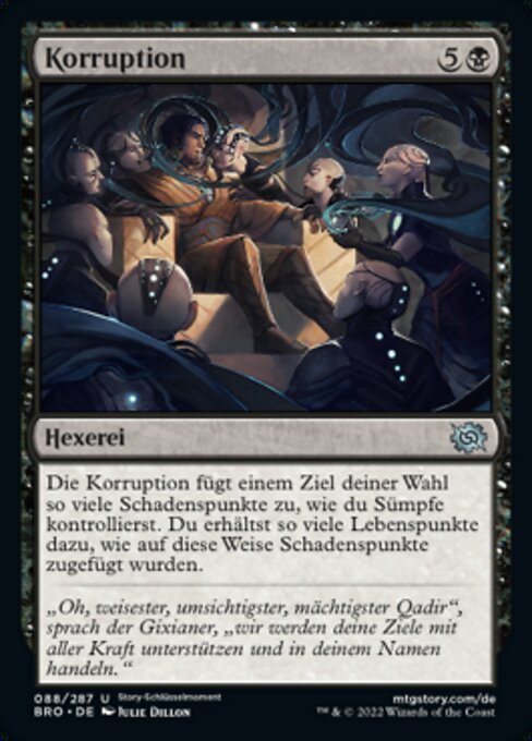 |  Variations : 1Parts— | CorruptCorrupt deals damage to any target equal to the number of Swamps you control. You gain life equal to the damage dealt this way.