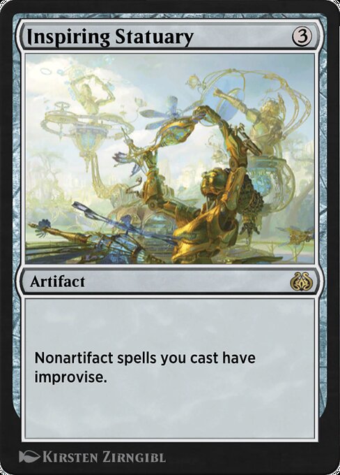![]() Variations : 2Parts : 2 | Inspiring StatuaryNonartifact spells you cast have improvise. (Your artifacts can help cast those spells. Each artifact you tap after you're done activating mana abilities pays for