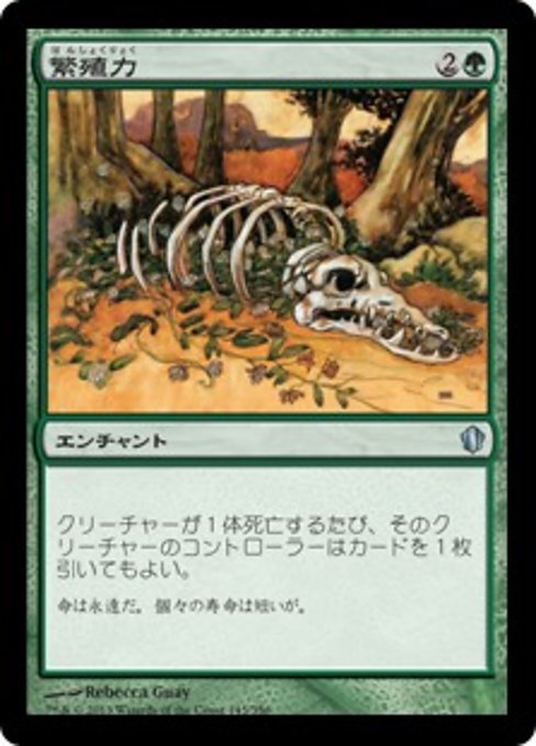 ![]() Variations— Parts— | 繁殖力クリーチャーが1体死亡するたび、そのクリーチャーのコントローラーはカードを1枚引いてもよい。