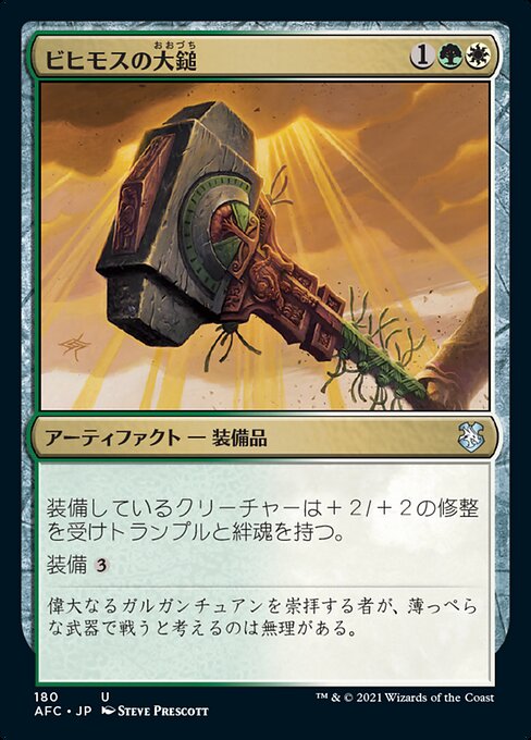 |  Variations— Parts— | ビヒモスの大鎚装備しているクリーチャーは+2/+2の修整を受けるとともに絆魂とトランプルを持つ。装備