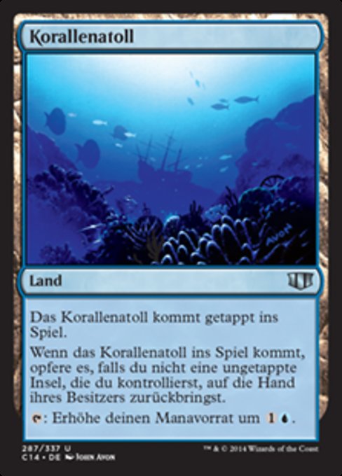 |  Variations— Parts— | Coral AtollThis land enters tapped. When this land enters, sacrifice it unless you return an untapped Island you control to its owner's hand.