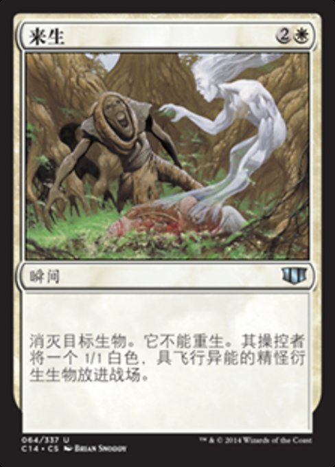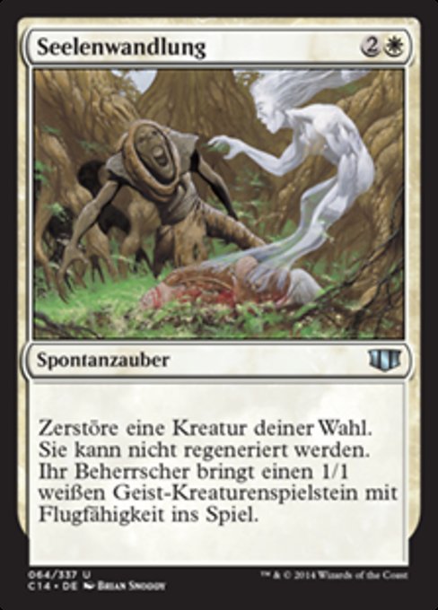 |  Variations— Parts— | AldilàDistruggi una creatura bersaglio. Non può essere rigenerata. Il suo controllore mette sul campo di battaglia una pedina creatura Spirito 1/1 bianca con volare.