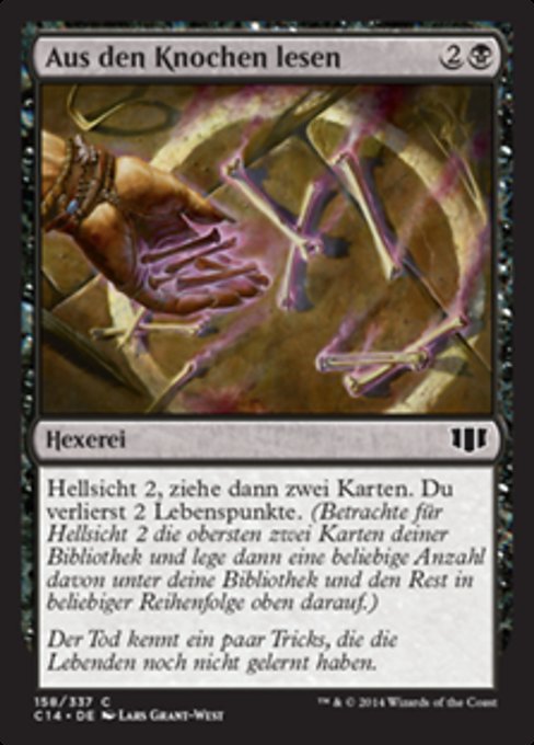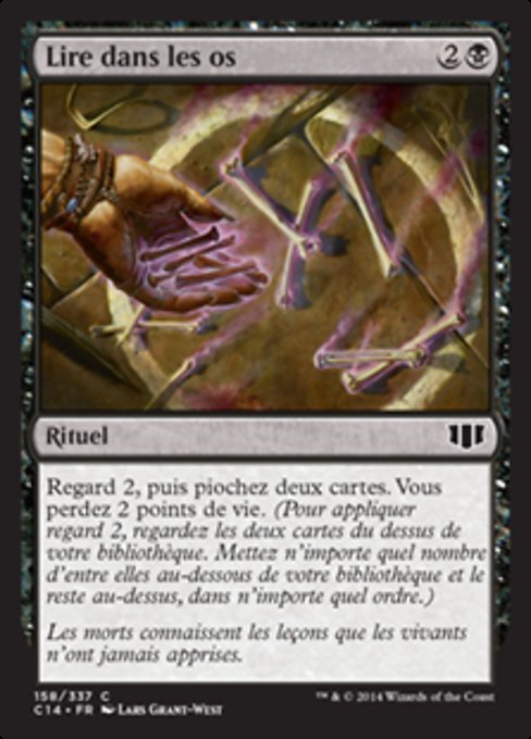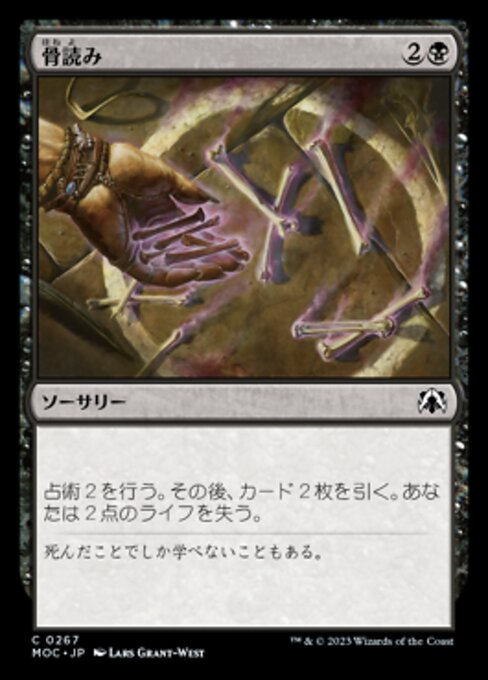 |  Variations— Parts— | 骨読み占術2を行い、その後カードを2枚引く。あなたは2点のライフを失う。(占術2を行うには、あなたのライブラリーの一番上から2枚のカードを見て、そのうちの望む枚数のカードを望む順番であなたのライブラリーの一番下に置き、残りを望む順番で一番上に置く。)
