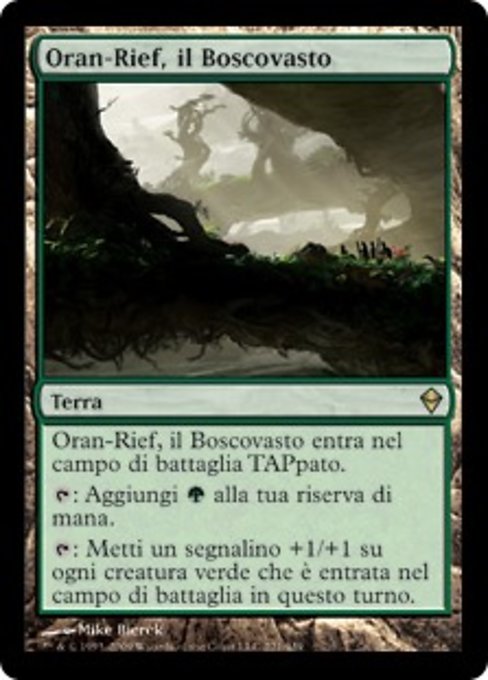 LegalitiesLegal Duel Penny Predh Legacy Modern Vintage Commander Oathbreaker Not Legal Brawl Future Pauper Alchemy Pioneer Historic Standard Timeless Gladiator Oldschool Premodern Standardbrawl Paupercommander RulingsOran-Rief's last ability cares about permanents' characteristics at the time the ability resolves, not their characteristics at the time they entered. For example, if a blue creature enters, then is turned green by a spell or ability, then Oran-Rief's second ability resolves, you'll put a +1/+1 counter on that creature.