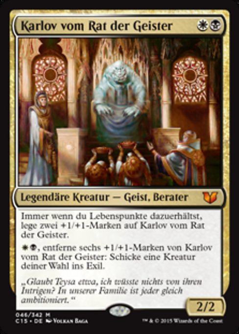 |  Variations— Parts— | Karlov del Concilio Fantasma2 / 2 Ogniqualvolta guadagni punti vita, metti due segnalini +1/+1 su Karlov del Concilio Fantasma.