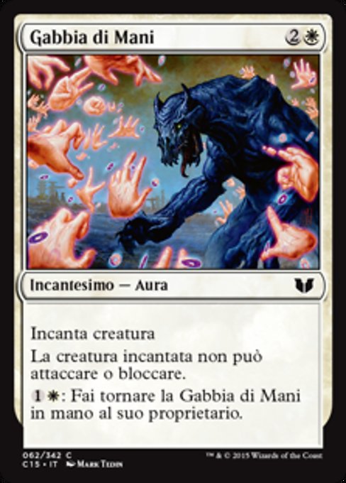 ![]() Variations— Parts— | Gabbia di ManiIncanta creaturaLa creatura incantata non può attaccare o bloccare.