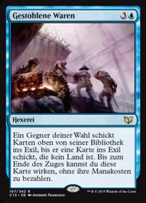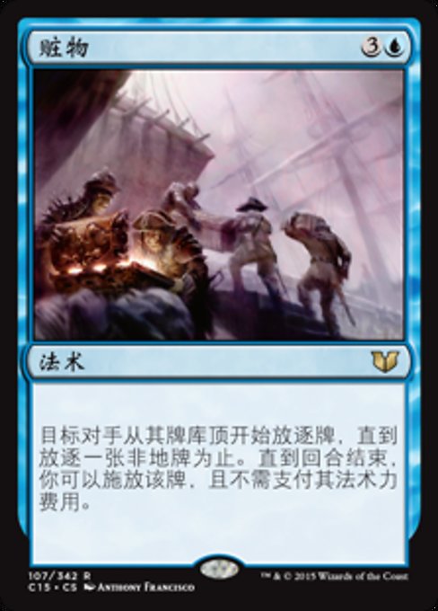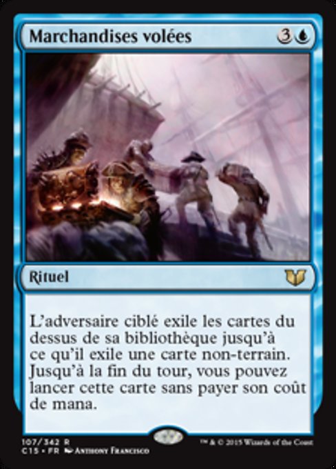 |  Variations— Parts— | 盗品対戦相手1人を対象とする。そのプレイヤーは、土地でないカードを追放するまで、自分のライブラリーの一番上のカードを追放し続ける。ターン終了時まで、あなたはそのカードをそのマナ・コストを支払うことなく唱えてもよい。