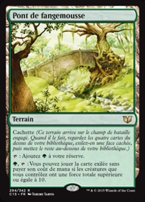 ![]() Variations— Parts— | 苔汁の橋秘匿(この土地はタップ状態で戦場に出る。そうしたとき、あなたのライブラリーの一番上から4枚のカードを見て、そのうち1枚を裏向きで追放し、残りをあなたのライブラリーの一番下に置く。)