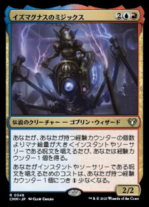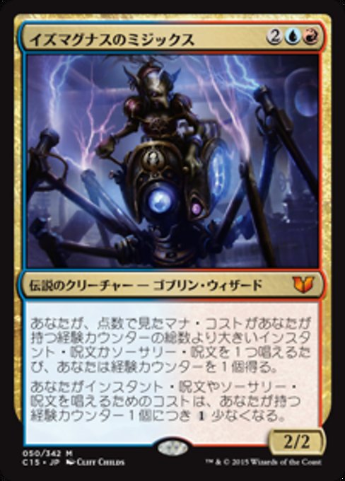 ![]() Variations— Parts— | イズマグナスのミジックス2 / 2 あなたが、点数で見たマナ・コストがあなたが持つ経験カウンターの総数より大きいインスタント・呪文かソーサリー・呪文を1つ唱えるたび、あなたは経験カウンターを1個得る。あなたがインスタント・呪文やソーサリー・呪文を唱えるためのコストは、あなたが持つ経験カウンター1個につき