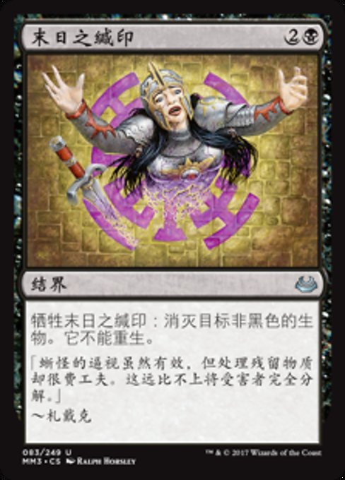 |  Variations— Parts— | 末日之缄印牺牲末日之缄印:消灭目标非黑色的生物。它不能重生。