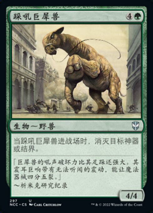 |  Variations— Parts— | 跺吼巨犀兽4 / 4 当跺吼巨犀兽进战场时,消灭目标神器或结界。