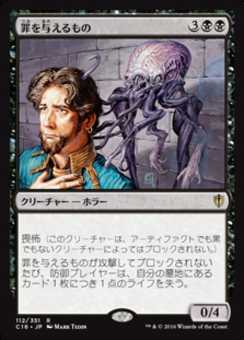 |  Variations— Parts— | Guiltfeeder0 / 4 Fear (This creature can't be blocked except by artifact creatures and/or black creatures.) Whenever this creature attacks and isn't blocked, defending player loses 1 life for each card in their graveyard.