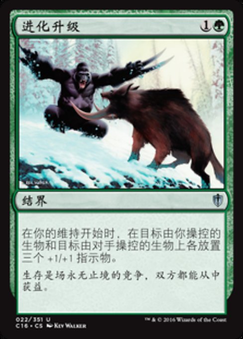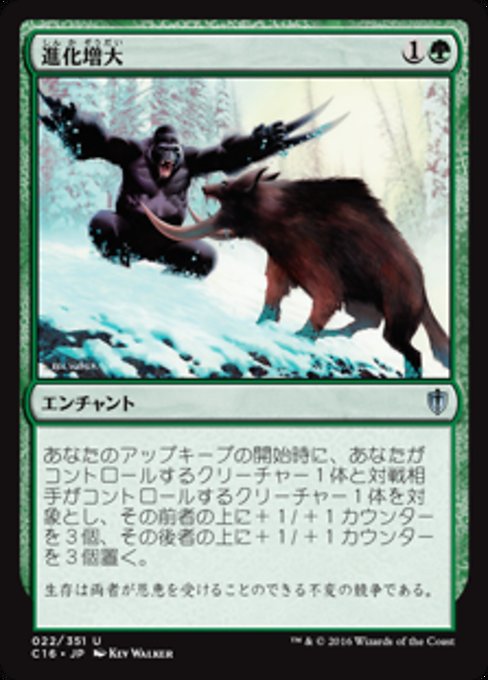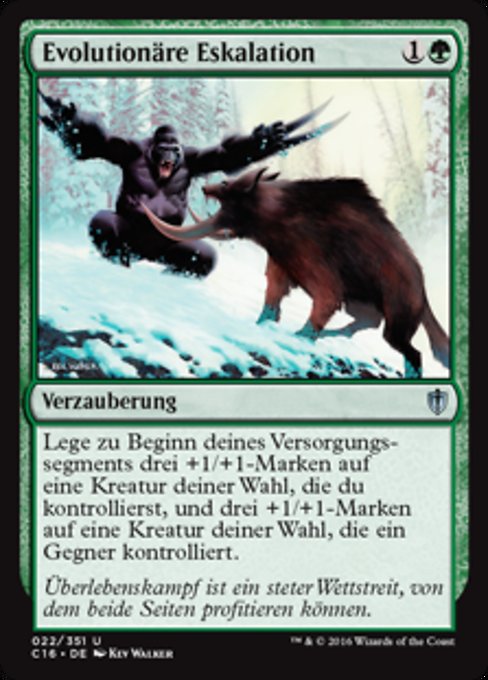 |  Variations— Parts— | Evolutionary EscalationAt the beginning of your upkeep, put three +1/+1 counters on target creature you control and three +1/+1 counters on target creature an opponent controls.