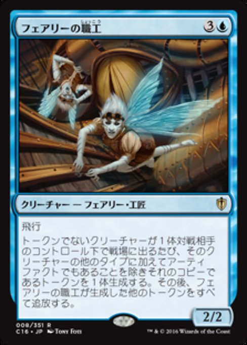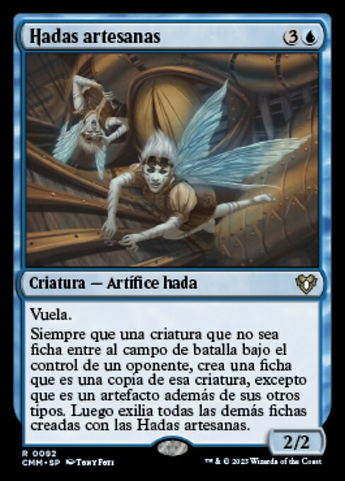 ![]() Variations— Parts— | Hadas artesanas2 / 2 Vuela. Siempre que una criatura que no sea ficha entre al campo de batalla bajo el control de un oponente, crea una ficha que es una copia de esa criatura, excepto que es un artefacto además de sus otros tipos. Luego exilia todas las demás fichas creadas con las Hadas artesanas.