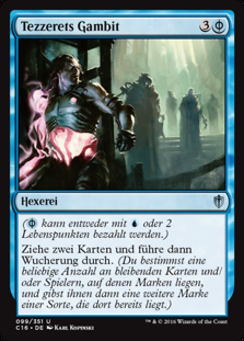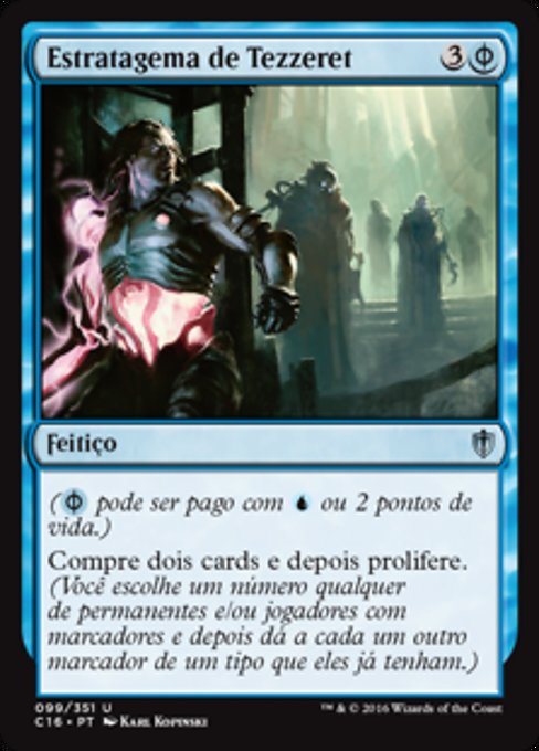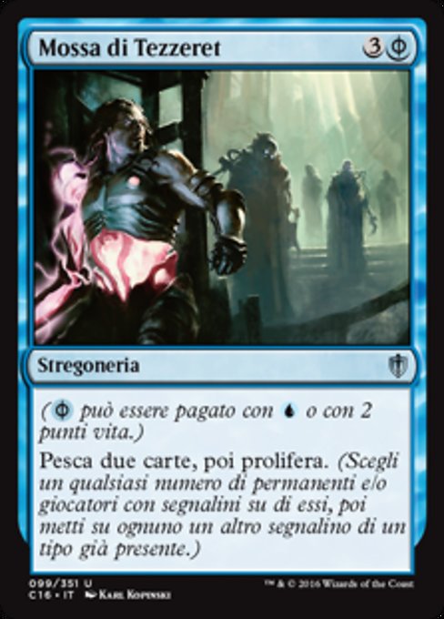 ![]() Variations— Parts— | Pari de Tezzeret( Piochez deux cartes, puis proliférez. (Vous choisissez n'importe quel nombre de permanents et/ou de joueurs avec des marqueurs sur eux, puis vous leur donnez à chacun un autre marqueur d'une sorte déjà présente.)