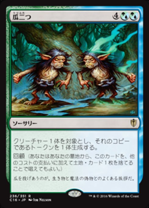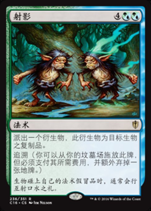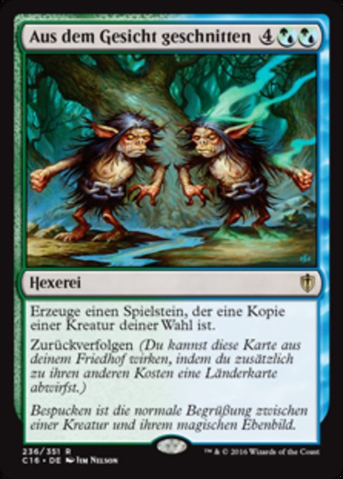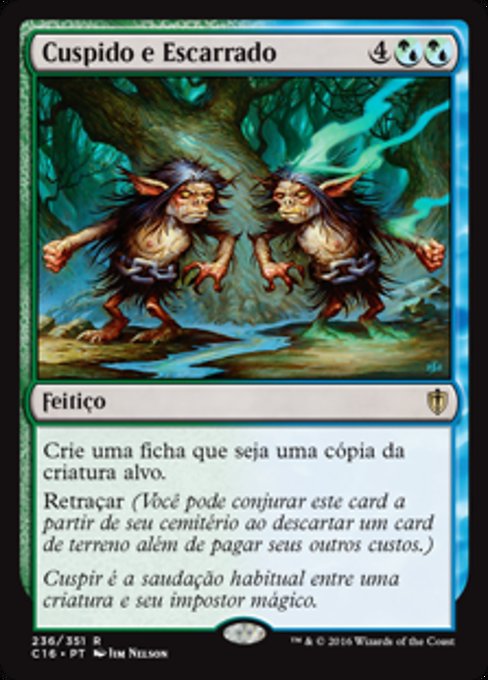 ![]() Variations— Parts— | Immagine SputataCrea una pedina che è una copia di una creatura bersaglio. Rievocare (Puoi lanciare questa carta dal tuo cimitero scartando una carta terra oltre a pagare gli altri suoi costi.)