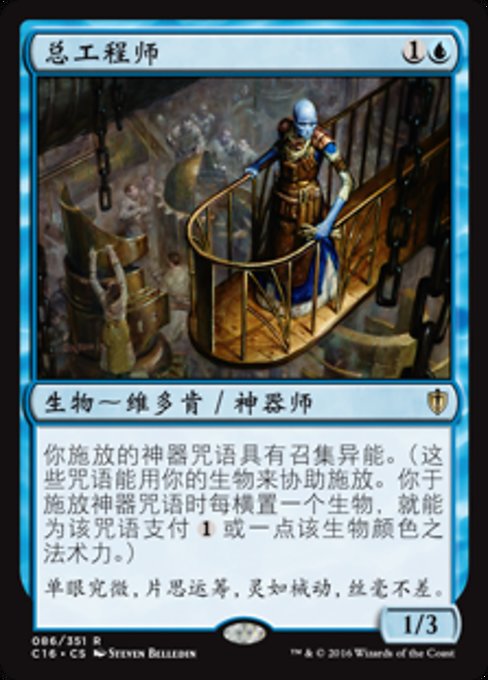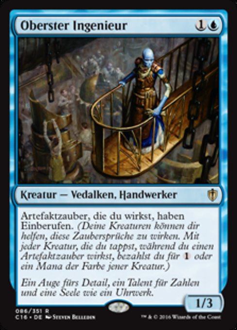 |  Variations— Parts— | Ingegnere Capo1 / 3 Le magie artefatto che lanci hanno convocazione. (Le tue creature possono aiutarti a lanciare quelle magie. Ogni creatura che TAPpi mentre lanci una magia artefatto corrisponde al pagamento di