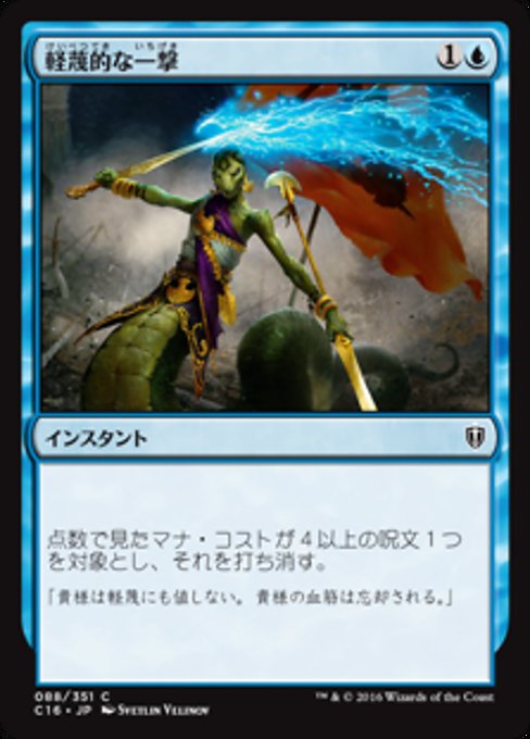 |  Variations— Parts— | Fendente SdegnosoNeutralizza una magia bersaglio con costo di mana convertito pari o superiore a 4.