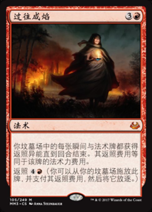 |  Variations— Parts— | 过往成焰你坟墓场中的每张瞬间与法术牌都获得返照异能直到回合结束。其返照费用等同于该牌的法术力费用。 返照