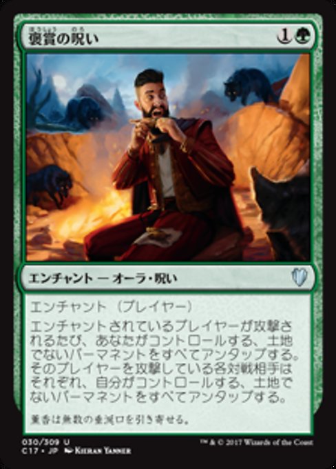 |  Variations— Parts— | Curse of BountyEnchant player Whenever enchanted player is attacked, untap all nonland permanents you control. Each opponent attacking that player untaps all nonland permanents they control.