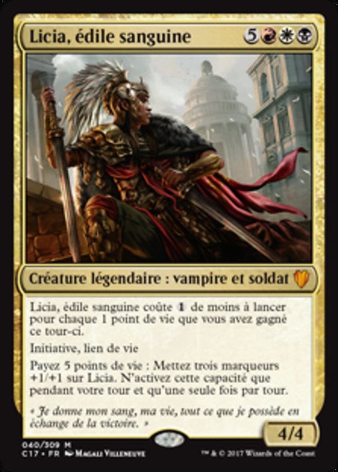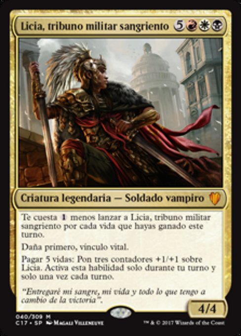 ![]() Variations— Parts— | Licia, Sanguine Tribune4 / 4 This spell costs First strike, lifelink Pay 5 life: Put three +1/+1 counters on Licia. Activate only during your turn and only once each turn.