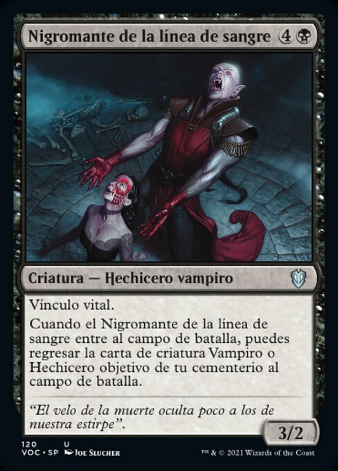 |  Variations— Parts— | Nigromante de la línea de sangre3 / 2 Vínculo vital. Cuando el Nigromante de la línea de sangre entre al campo de batalla, puedes regresar la carta de criatura Vampiro o Hechicero objetivo de tu cementerio al campo de batalla.