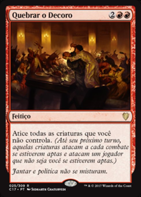 |  Variations— Parts— | Perturbación del decoroIncita a todas las criaturas que no controlas. (Hasta tu próximo turno, esas criaturas atacan cada combate si pueden y atacan a un jugador que no seas tú si pueden.)