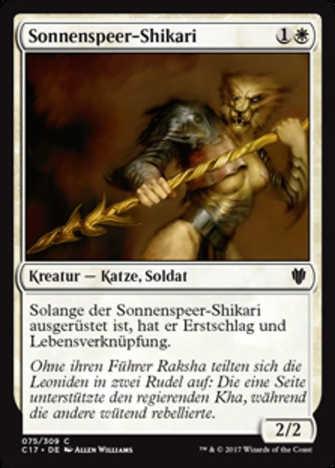 LegalitiesLegal Duel Brawl Penny Predh Legacy Modern Pauper Vintage Historic Timeless Commander Gladiator Oathbreaker Paupercommander Not Legal Future Alchemy Pioneer Standard Oldschool Premodern Standardbrawl RulingsIf all Equipment attached to Sunspear Shikari somehow becomes unequipped after it deals combat damage in the first combat damage step, it won't assign combat damage in the second combat damage step.