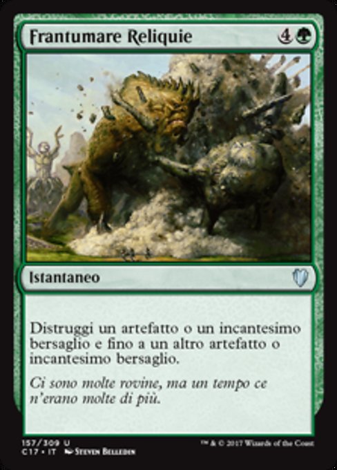 |  Variations— Parts— | Frantumare ReliquieDistruggi un artefatto o un incantesimo bersaglio e fino a un altro artefatto o incantesimo bersaglio.