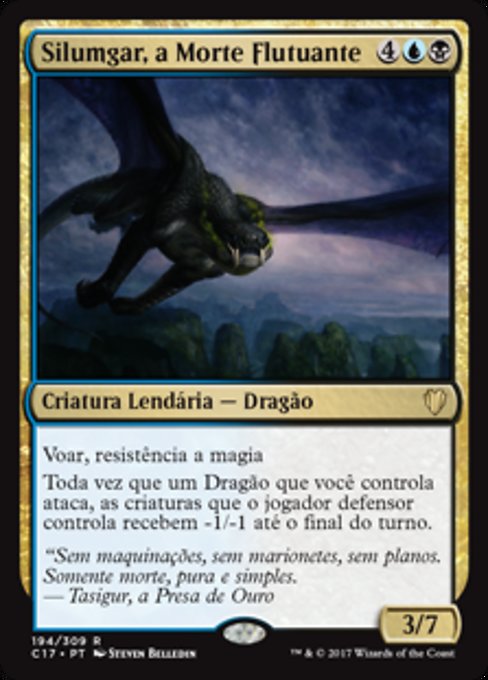 |  Variations— Parts— | Silumgar, la Morte Vagante3 / 7 Volare, anti-malocchio Ogniqualvolta un Drago che controlli attacca, le creature controllate dal giocatore in difesa prendono -1/-1 fino alla fine del turno.