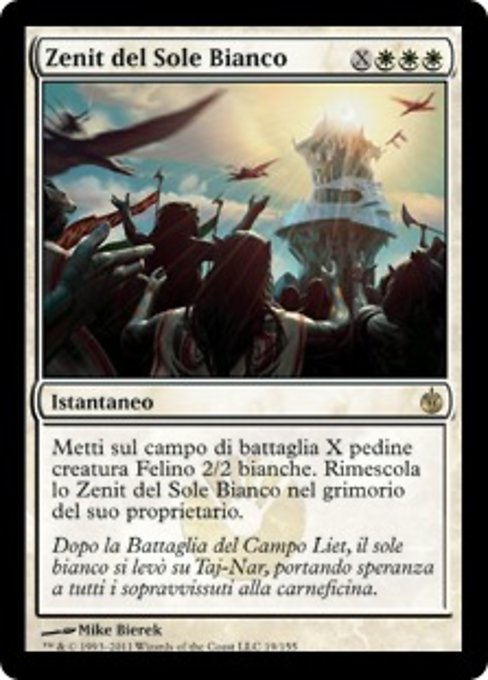 |  Variations— Parts— | Zenit del Sole BiancoCrea X pedine creatura Felino 2/2 bianche. Rimescola lo Zenit del Sole Bianco nel grimorio del suo proprietario.