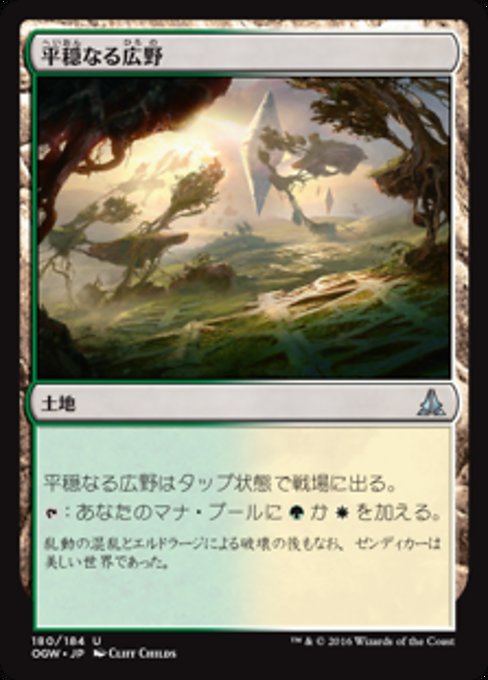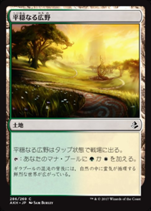 |  Variations— Parts— | 平穏なる広野平穏なる広野はタップ状態で戦場に出る。