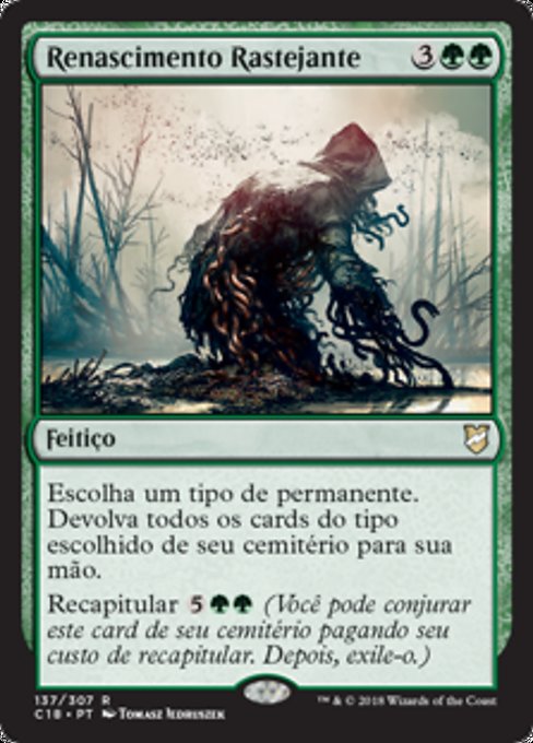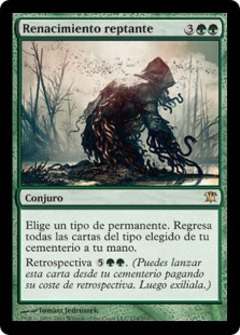 ![]() Variations— Parts— | Renacimiento reptanteElige un tipo de permanente. Regresa todas las cartas del tipo elegido de tu cementerio a tu mano. Retrospectiva
