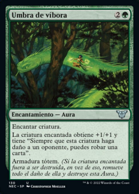 |  Variations— Parts— | Umbra de víboraEncantar criatura. La criatura encantada obtiene +1/+1 y tiene "Siempre que esta criatura haga daño a un oponente, puedes robar una carta". Armadura tótem. (Si la criatura encantada fuera a ser destruida, en vez de eso, remueve todo el daño de ella y destruye este Aura.)