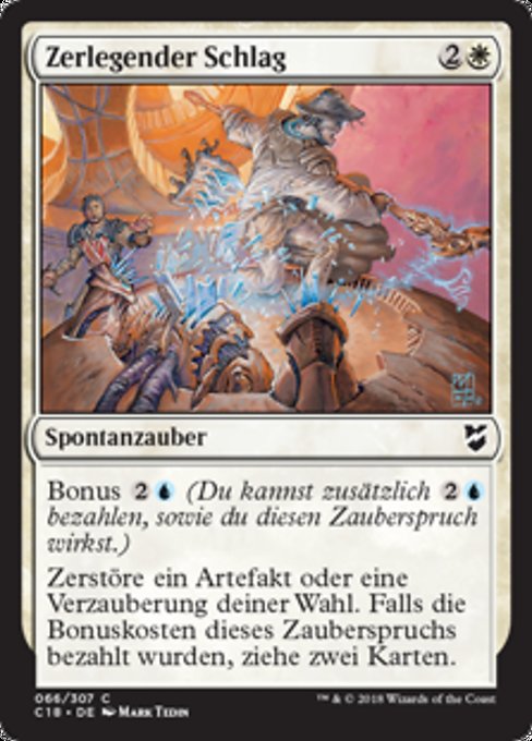 ![]() Variations— Parts— | Colpo DevastantePotenziamento Distruggi un artefatto o un incantesimo bersaglio. Se questa magia è stata potenziata, pesca due carte.