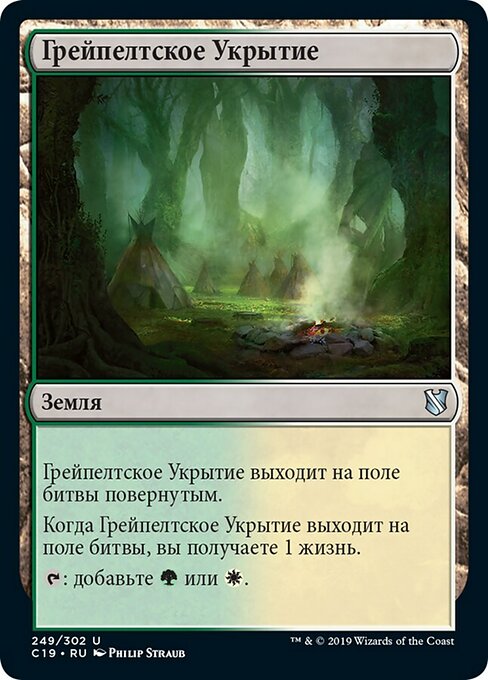 ![]() Variations— Parts— | Graypelt RefugeThis land enters tapped. When this land enters, you gain 1 life.