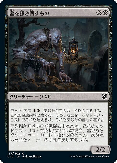 ![]() Variations— Parts— | Raspatombe2 / 2 Follia Quando il Raspatombe entra nel campo di battaglia, se è stato pagato il suo costo di follia, puoi far tornare una carta creatura bersaglio da un cimitero in mano al suo proprietario.