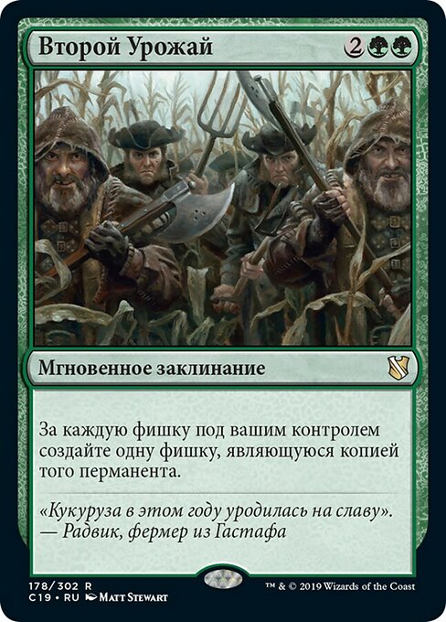 LegalitiesLegal Duel Brawl Penny Legacy Modern Pioneer Vintage Historic Timeless Commander Gladiator Oathbreaker Not Legal Predh Future Pauper Alchemy Standard Oldschool Premodern Standardbrawl Paupercommander RulingsSecond Harvest copies the original characteristics of each token as stated by the effect that created that token. It doesn’t copy whether that token is tapped or untapped, whether it has any counters on it or any Auras and Equipment attached to it, or any non-copy effects that have changed its power, toughness, types, color, or so on.