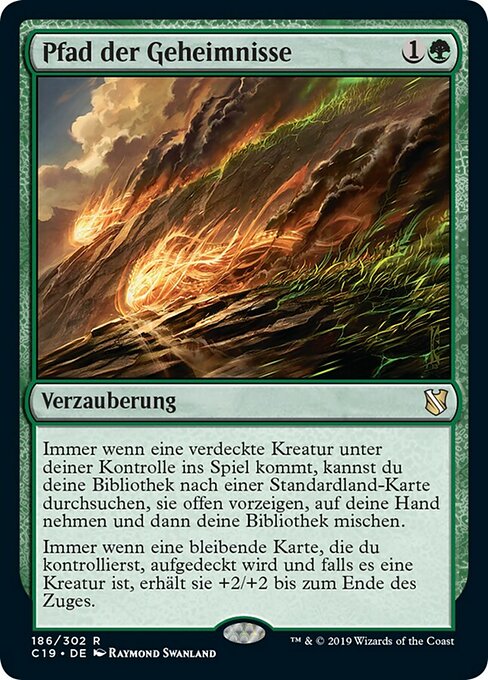 ![]() Variations— Parts— | 神秘の痕跡裏向きのクリーチャーが1体あなたのコントロール下で戦場に出るたび、あなたは「あなたのライブラリーから基本土地・カードを1枚探し、それを公開してあなたの手札に加え、その後あなたのライブラリーを切り直す。」を選んでもよい。 あなたがコントロールしているパーマネントが表向きになるたび、それがクリーチャーである場合、ターン終了時まで、それは+2/+2の修整を受ける。